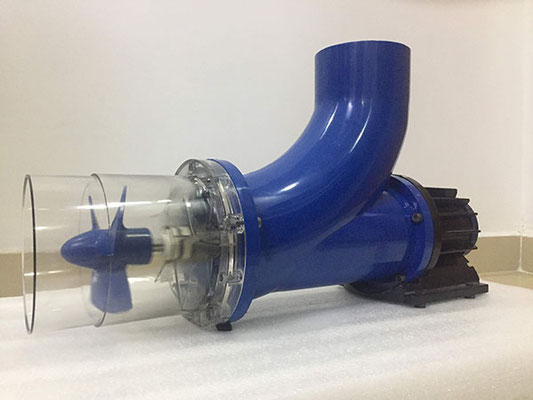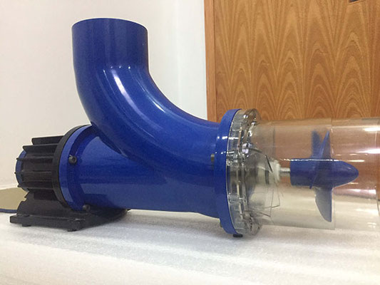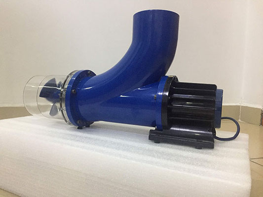 De pompkop is voorzien van maar liefst 2 impellers, te weten een dynamische en een statische. Deze ontwikkeling zorg er voor dat er binnen de pompkop een laminaire stroom water loopt welke daardoor nog efficiënter werk en geruisloos is. Grafieken tonen aan dat een flow van 50m3 bij 1 meter opvoerhoogte tot de mogelijkheden behoort met het kleinste model Blue-Eco. Met minder opvoerhoogte haat deze pomp eenvoudig maar liefst 80m3 per uur.